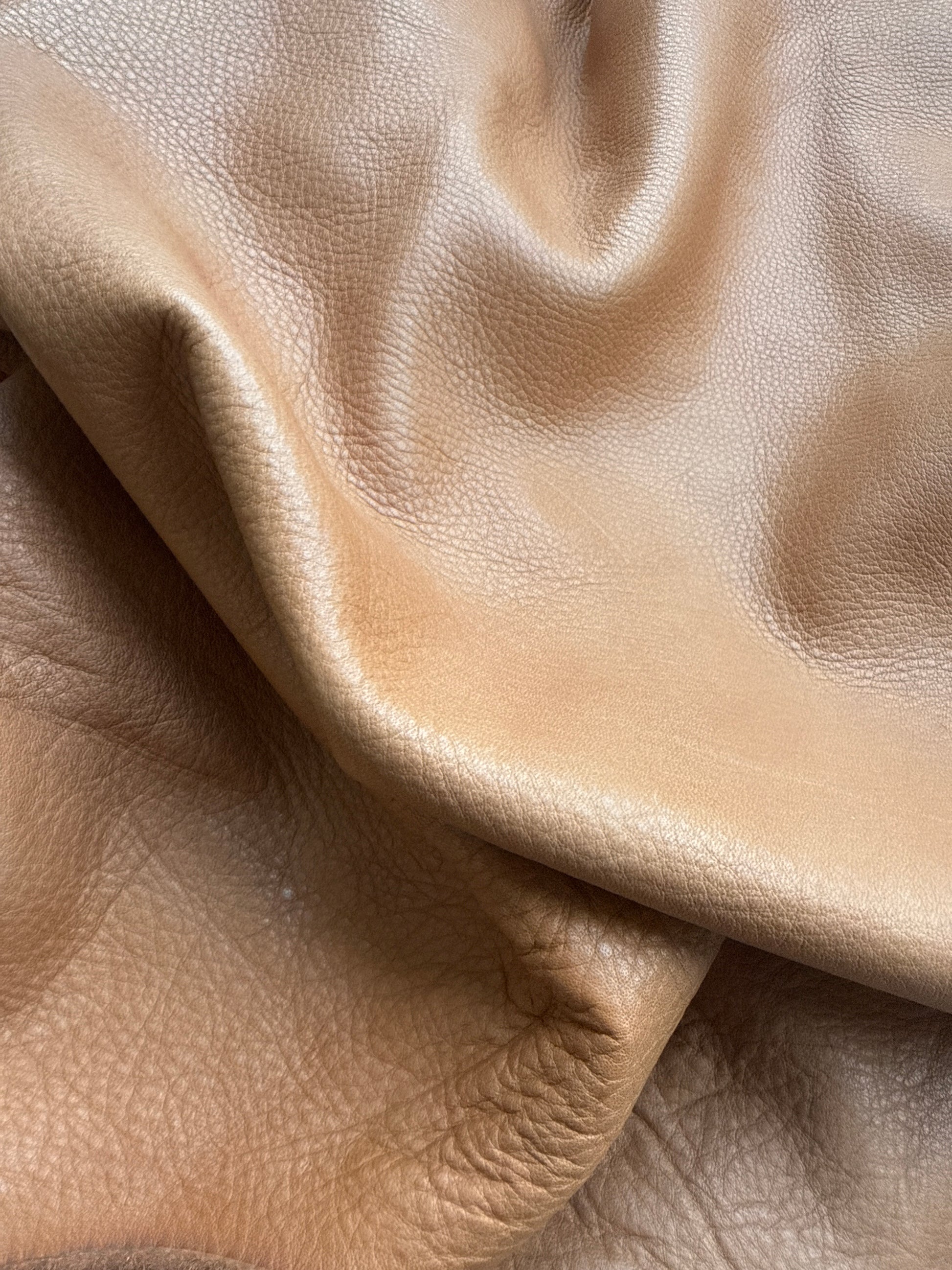 Rindnappa vollnarbig vegetabil Cappuccino 1,4 mm. Länge ca. 2m. Zentimeterware. Mit naturmerkmalen